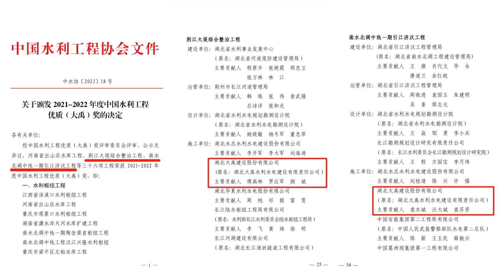 5月5日,中国水利工程协会发布《关于颁发2021-2022年度中国水利工程优质(伟德国际1946源于英国)奖的决定》(中水协〔2023〕18号),公司参建的南水北调中线一期引江济汉工程、荆江大堤综合整治工程两项工程荣获中国水利工程优质(伟德国际1946源于英国)奖。