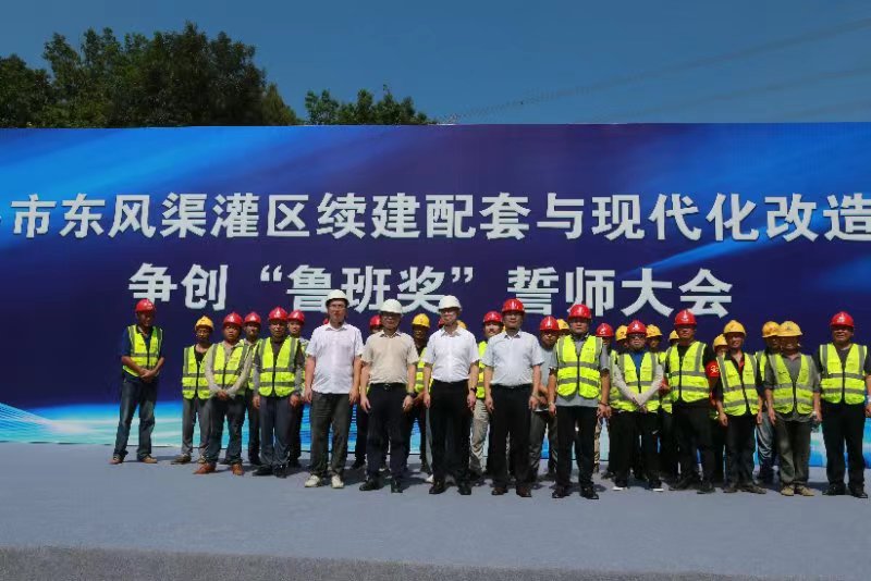 市东风渠灌区管理局党委委员、副局长谭学军首先发出争创“鲁班奖”的动员令。随后参建各方积极响应,上台做表态发言,并在争创“鲁班奖”的承诺书上签字。