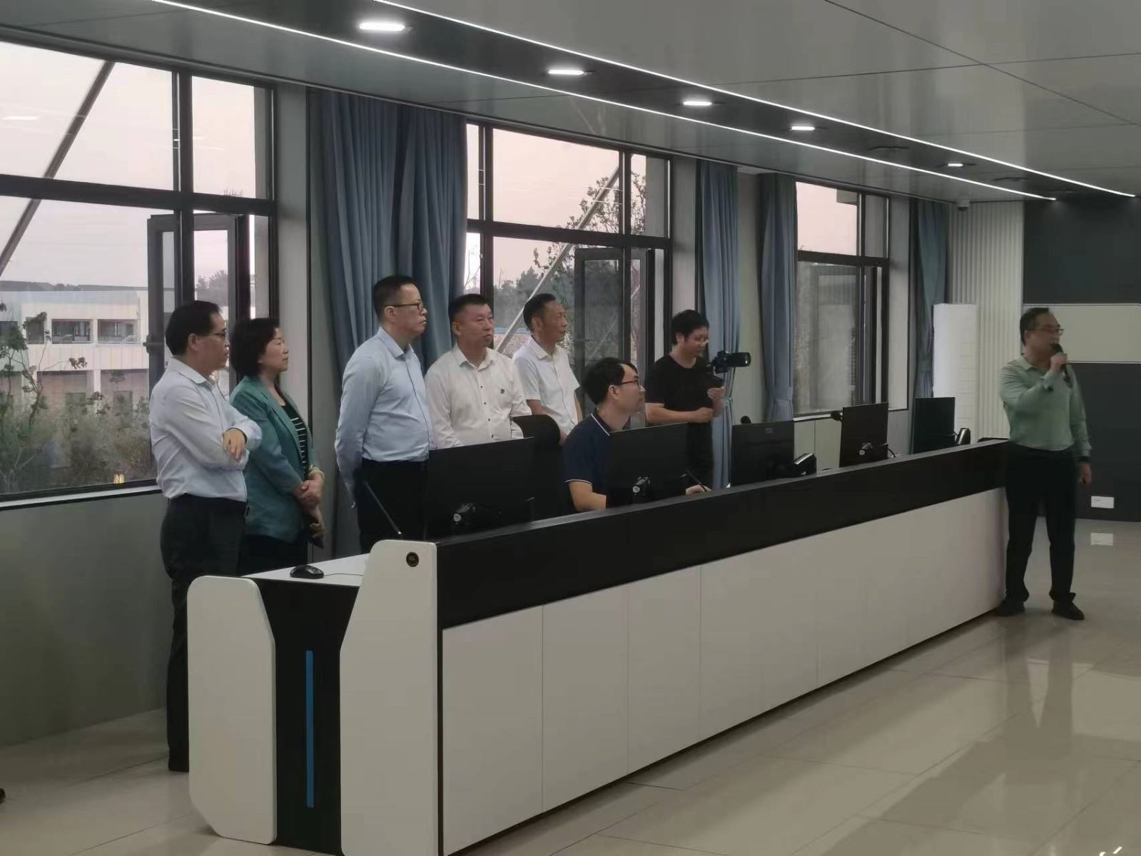 调研组听取了项目进展情况及中心水厂数字孪生软件方面的汇报,项目部负责人详细介绍了数字孪生软件在项目中的应用情况,并展示了实际操作过程与实时监测数据。