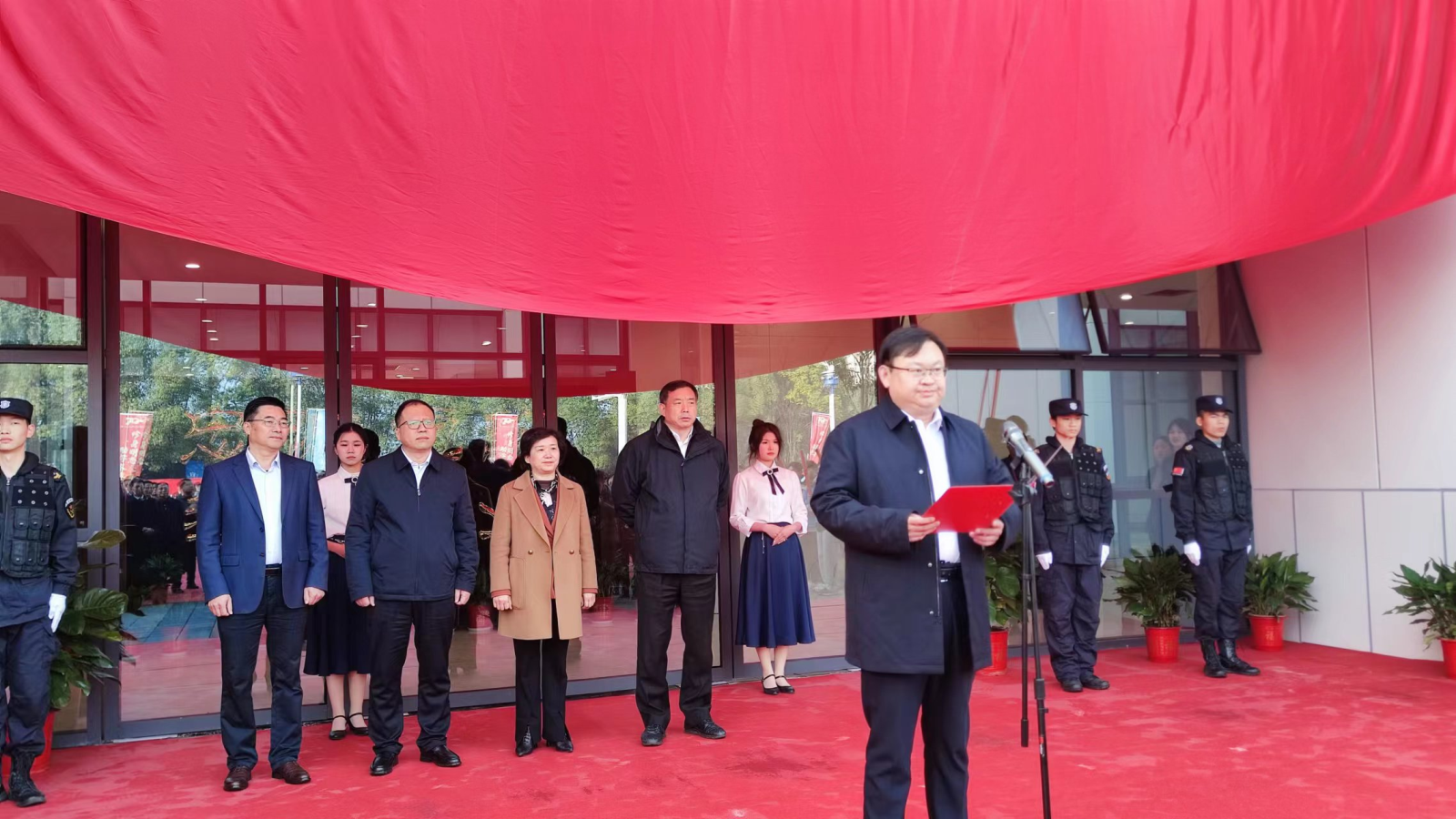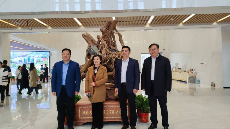 其后,胡刚代表公司为水院送上根雕表达祝贺,在热烈的掌声中,胡刚同省水利厅党组成员、副厅长孙国荣、湖北省教育厅职业教育与成人教育处处长余弢、水院党委书记王玉才水院一起来到大学生活动中心大厅正中央,为根雕揭幕,寓意着伟德国际1946源于英国与水院“同气连枝,根植水利”,树抱石崖柏根雕“‘石’来运转、以石为玉”,也寓意着水院始终坚守为国育人、为党育才的初心使命。