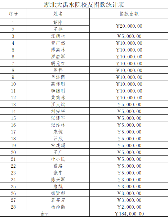 公司总经理胡刚受邀参加校庆活动,并率副总经理罗应军、总经理助理胡元红、分子公司及职能部门中优秀校友一同出席大会,共忆求学岁月,畅叙水院情谊,为水院70周年华诞送上诚挚祝福,代表公司校友向母校捐赠18.4万元(名单附后)深切感谢母校的栽培。