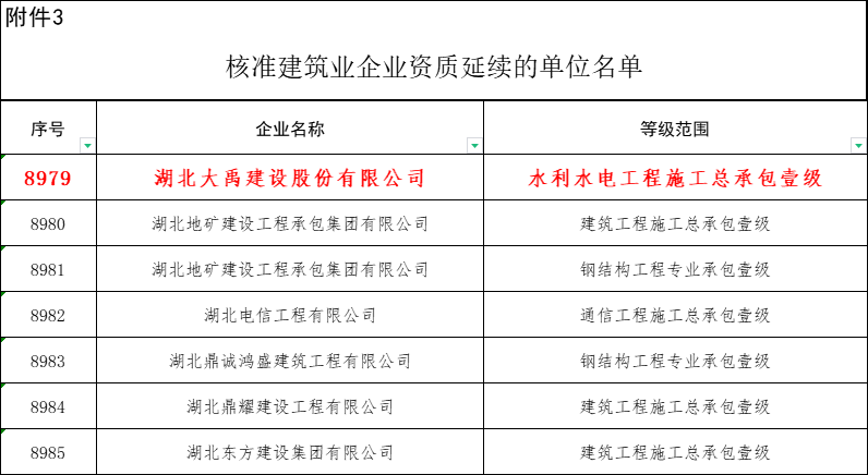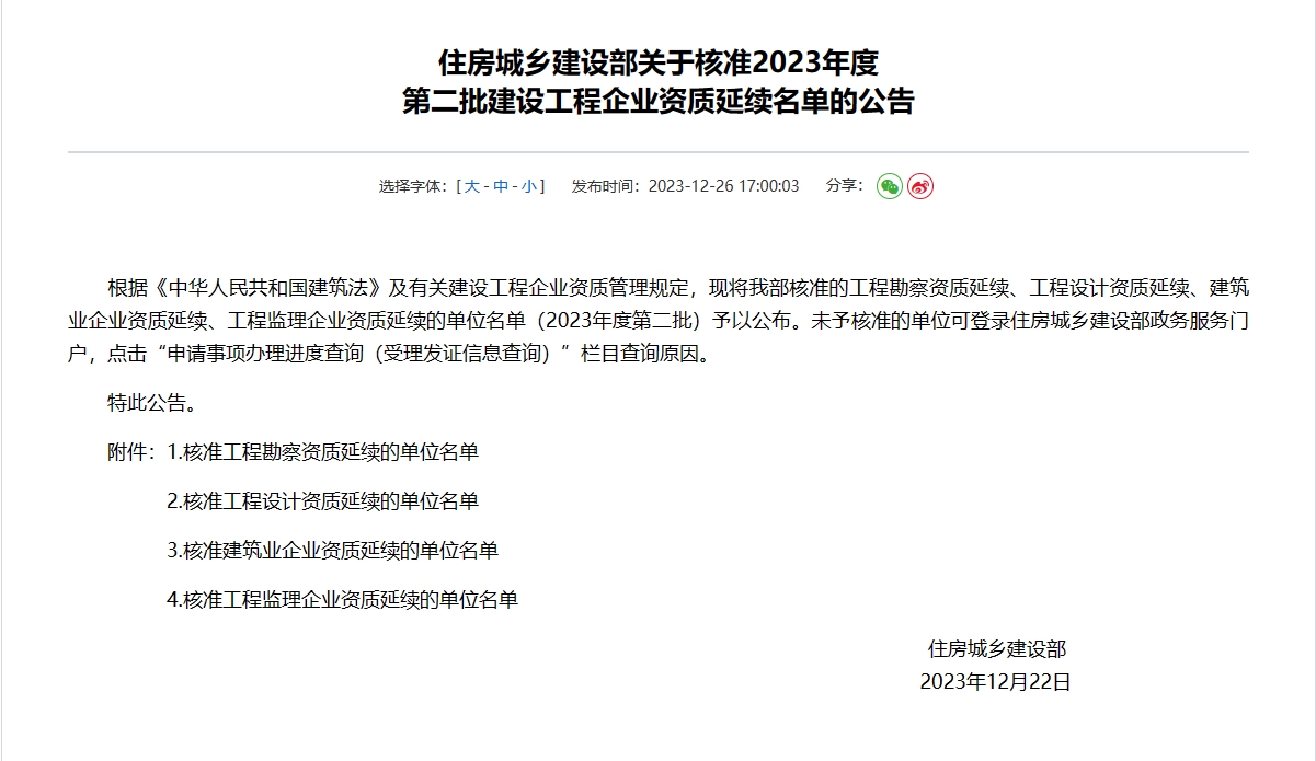 12月26日,经住房城乡建设部核准,公司通过2023年度建筑业企业资质延续核准,继续保有水利水电施工总承包壹级资质,标志着公司生产经营基础性保障工作进一步夯实,企业竞争力与市场准入能力日益稳固。