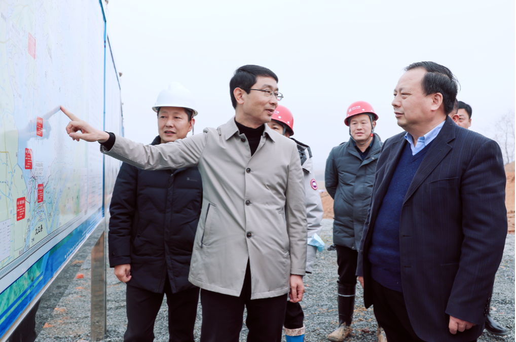 ​2024年1月31日,省水利厅纪检监察组组长王基若一行赴华阳河蓄滞洪区建设工程(湖北部分)施工第5标段项目开展调研工作,黄冈市水利和湖泊局局长吴愿明、黄梅县委书记刘欲晓、黄梅县水利和湖泊局局长徐旭文及第二工程公司负责人陪同调研。