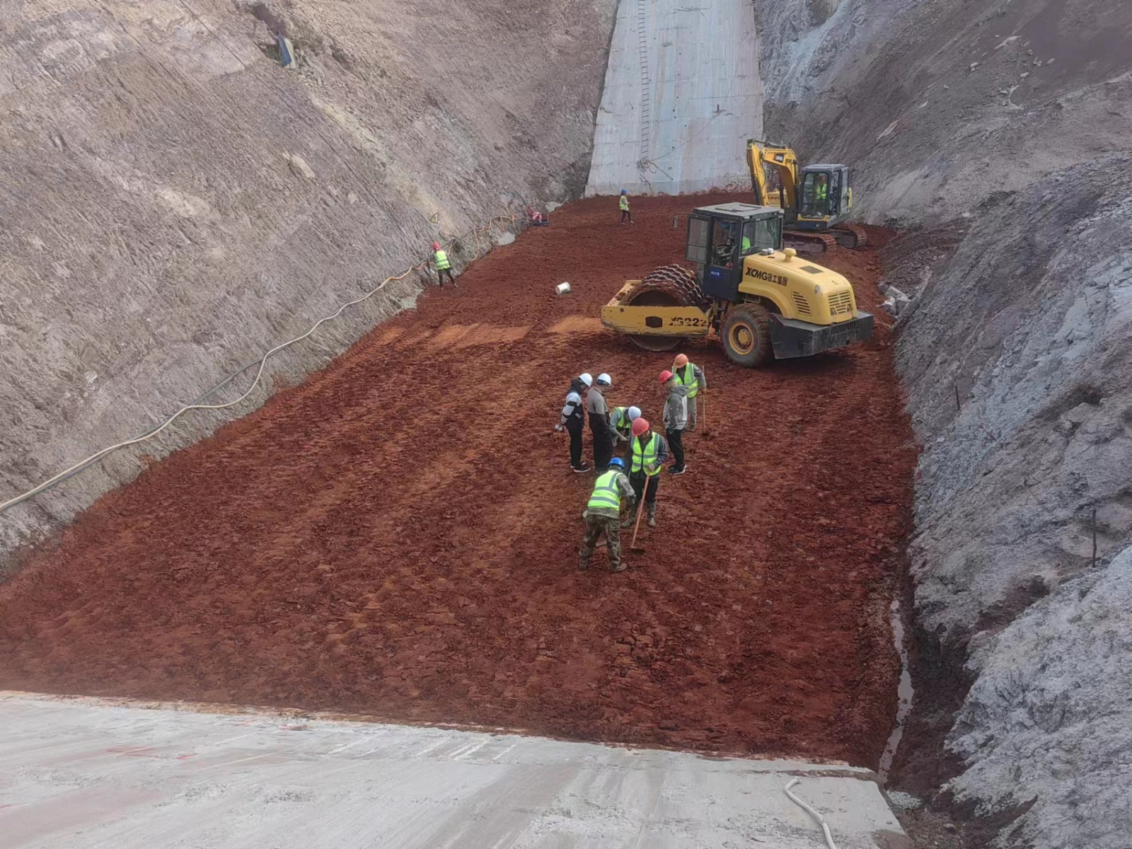 2024年2月25日,随着挖掘机、自卸汽车及压路机等机械轰鸣声的响起,在业主、监理、施工等各方的见证下,小黑箐水库喜迎水库黏土心墙风化料坝第一层黏土心墙填筑工作,这意味着小黑箐水库黏土心墙风化料坝主体工程正式进入坝体填筑施工阶段,也是续年前小黑箐水库完成导流输水隧洞、溢洪道及大坝固结、帷幕灌浆等施工内容后的又一重要工程节点。此次坝体填筑标志着该水库的“核心”结构正式开始,已进入坝体结构施工的攻坚阶段。