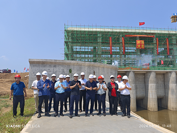 8月22日,应城市喻家泵站工程完成主体建筑物封顶,这标志着应城市喻家泵站项目主体工程取得了阶段性胜利。应城市水利局局长陈曙东一行亲临现场并祝贺。公司董事、副总经理王红祥及项目负责人全程陪同。